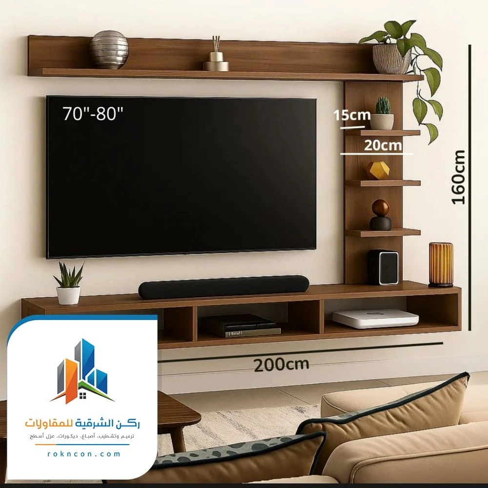 تفصيل بيت شاشة خشب يمنحك حرية كاملة في اختيار الشكل والمقاس واللون بما يتوافق مع ديكور الغرفة، سواء كنت في الخبر أو القطيف. على عكس القطع الجاهزة، يتم تصميم ديكورات شاشات بلازما على الحائط وفق أبعاد الجدار الحقيقي. مع مراعاة أماكن الأسلاك والأجهزة والإضاءة. لذلك تظهر النتيجة النهائية أكثر أناقة وتناغم مع الأثاث. ويتحول ديكور شاشات 2026 القطيف الذي يتم تفصيله خصيصا إلى عنصر ديكور مميز بدل أن تكون مجرد جهاز معلق على الحائط.
